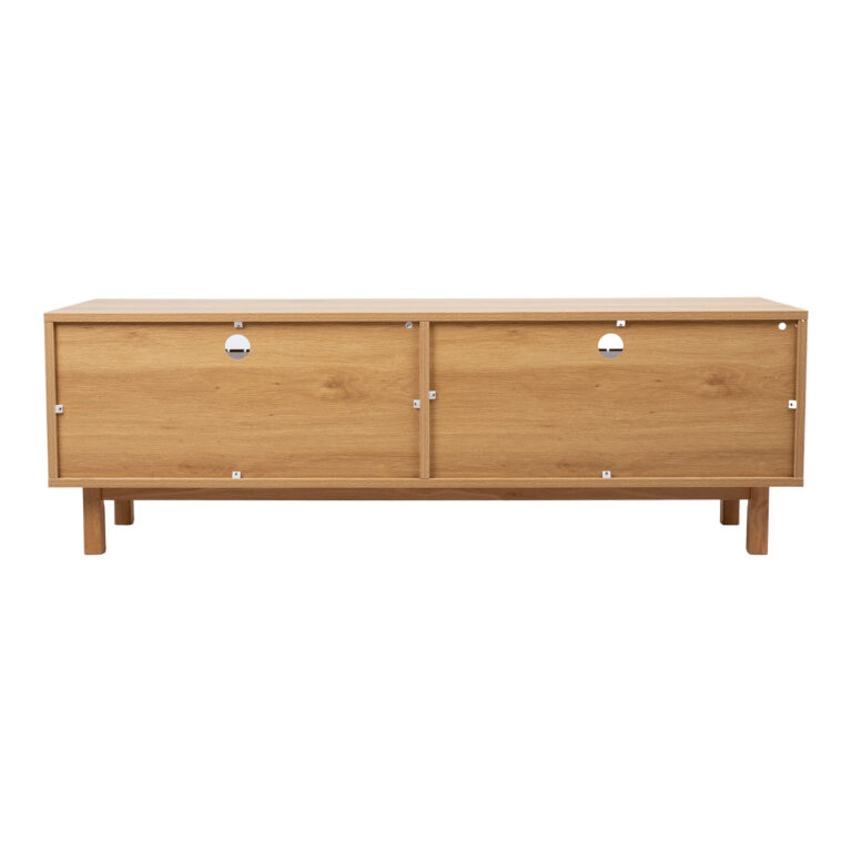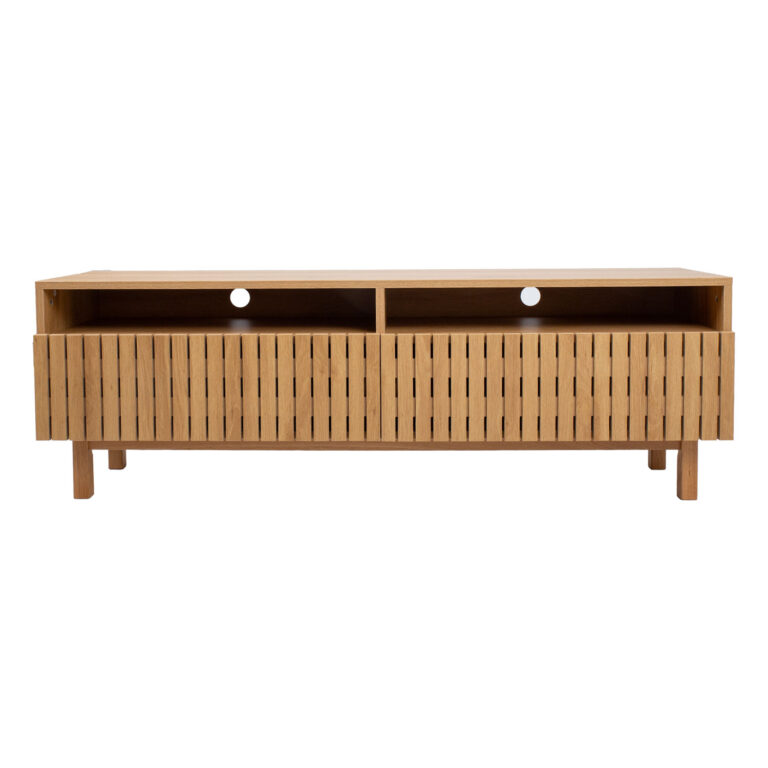 TV laud on valmistatud heleda tammedekooriga melamiinplaadist. Peenikestest liistudest esipaneelid loovad õhulise ja elegantse mulje.
