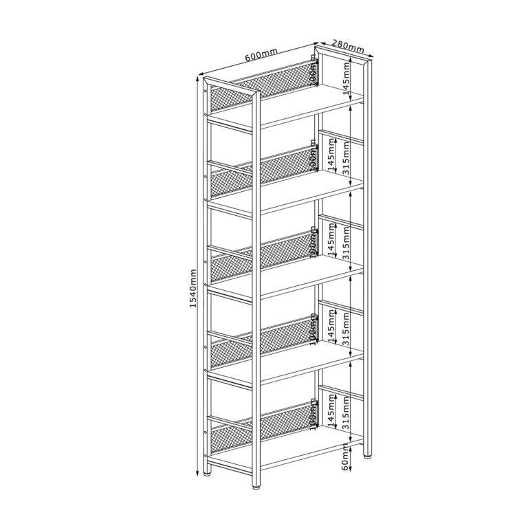 Riiul HECTOR 60x28xH154cm, saar/must.