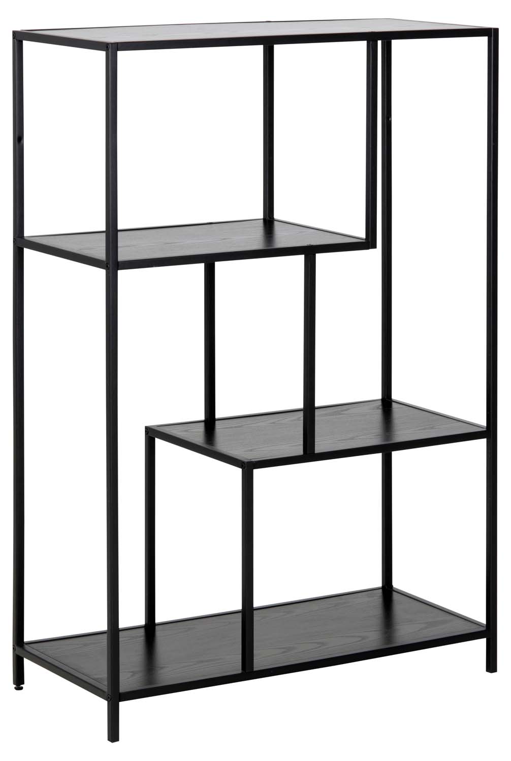 Riiul SEAFORD 77x35xH114cm, 3x, riiulid: must saare melamiin, raam: must metall