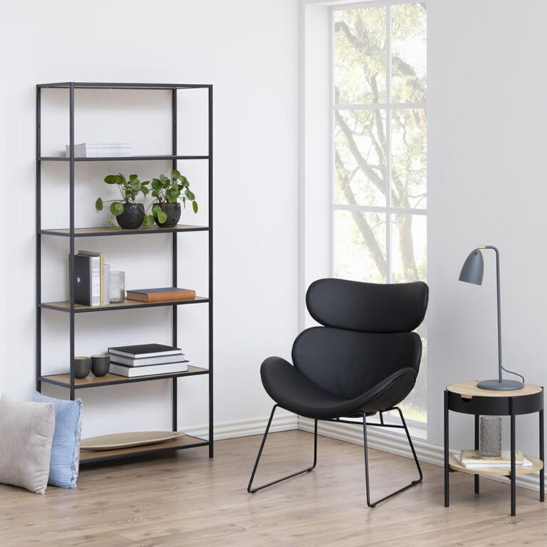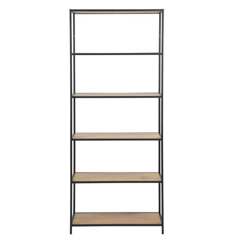 Riiul SEAFORD 77x35xH185cm, metsik tamm. Maitsekat ja praktilist riiulit on võimalik kasutada erinevates ruumides asjade mugavaks hoiustamiseks. Riiulid on valmistatud lamineeritud kattega mööbliplaadist. Värvus on metsik tamm. Raam on valmistatud musta värvi metallist. Toote mõõdud on 77x35xH185cm.