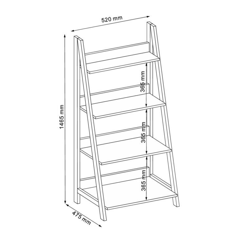 Toote üldmõõdud on 52×47,5xH146,5cm. Riiulite vahekaugus 36,5cm.