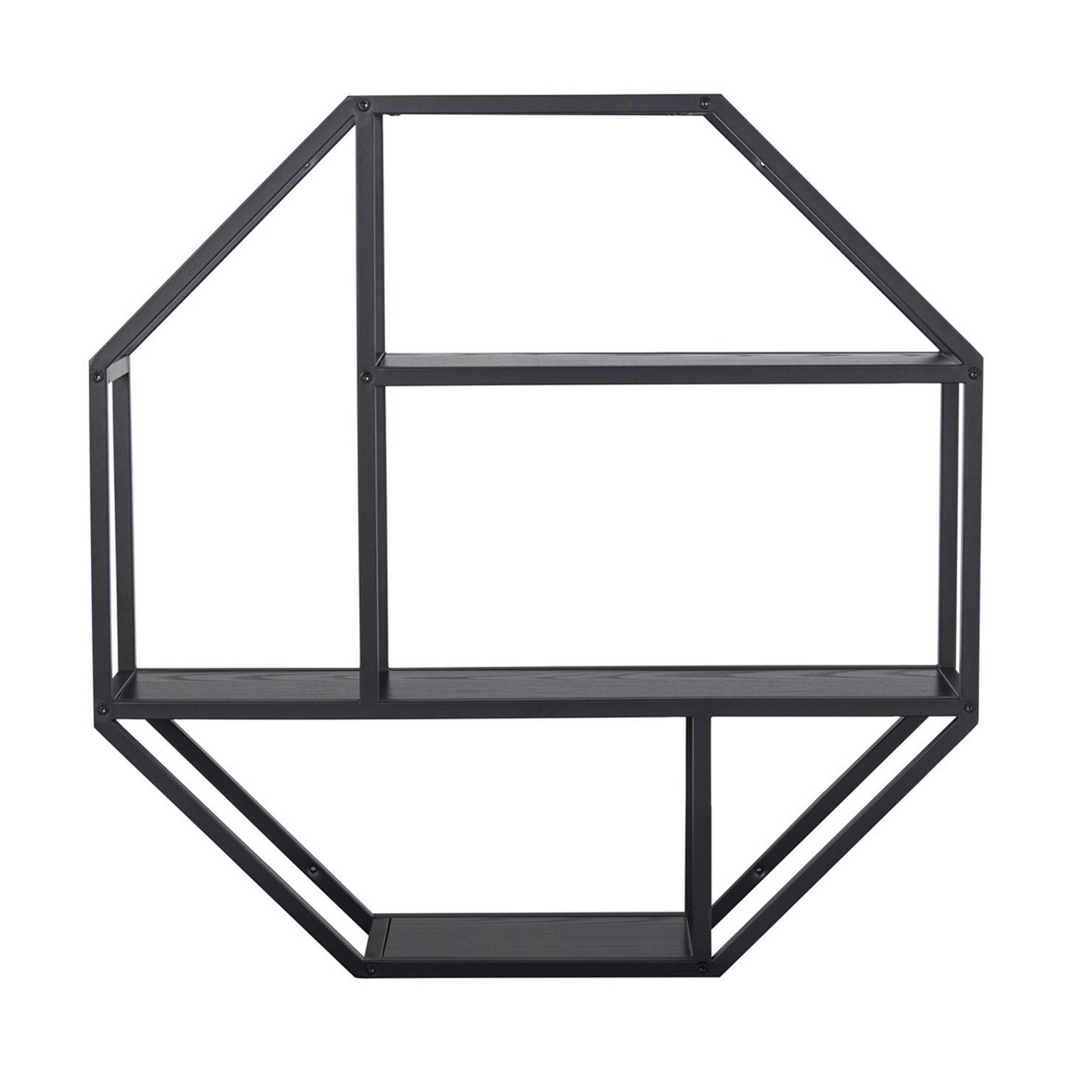 Seinariiul SEAFORD 77x22xH77cm, must. Looge ainulaadne seinakujundus ja eksponeerige oma meelisesemeid, muutes nii ruumi isikupäraseks. Kaheksanurkne riiul mõjub stiilsena ja sobib paljude interjööridega. Riiulil on musta saare värvi riiuliplaadid, mida toetab pulbervärvitud metallist raam. Riiulid: must saare melamiin, raam: metall, must. HOOLDUS: Üldjuhul vajavad melamiinpinnad vähe hoolt. Kasutage seebiveest kuivaks väänatud lappi ja pühkige pind kuivaks. Vältige küürimispulbri või nailonkäsnade kasutamist, kuna need pleegitavad või kriimustavad laminaati. Ärge hõõruge pinda kõvade esemetega.