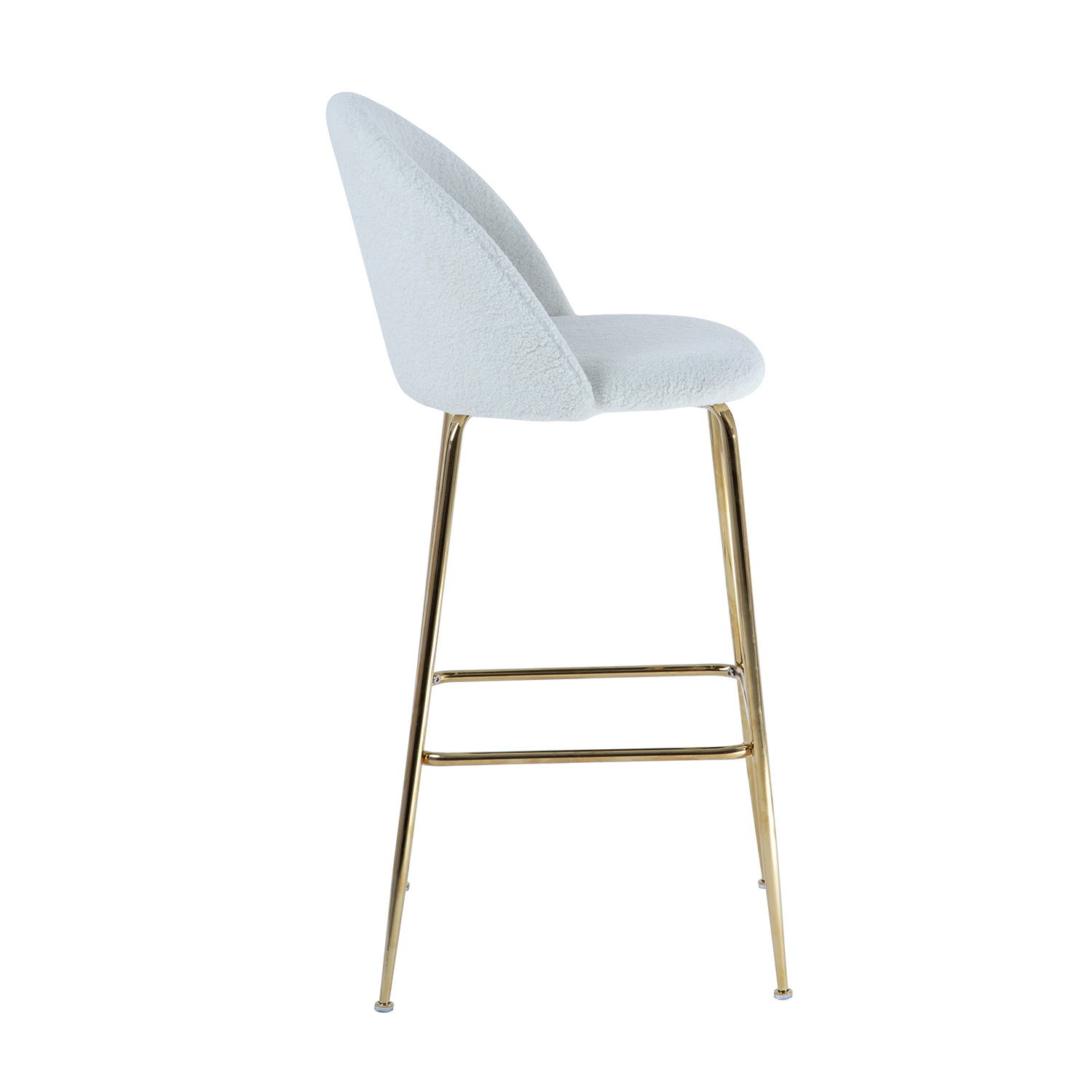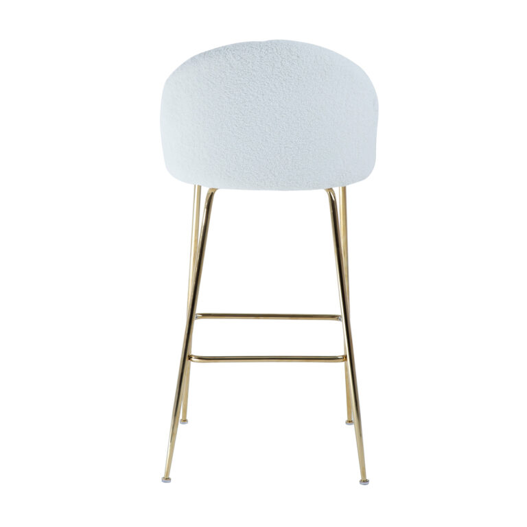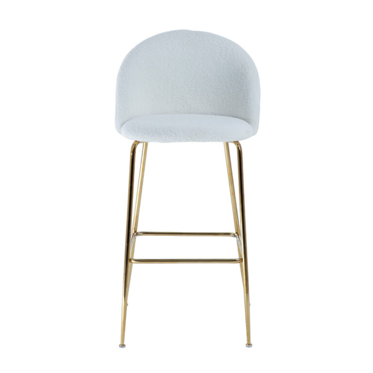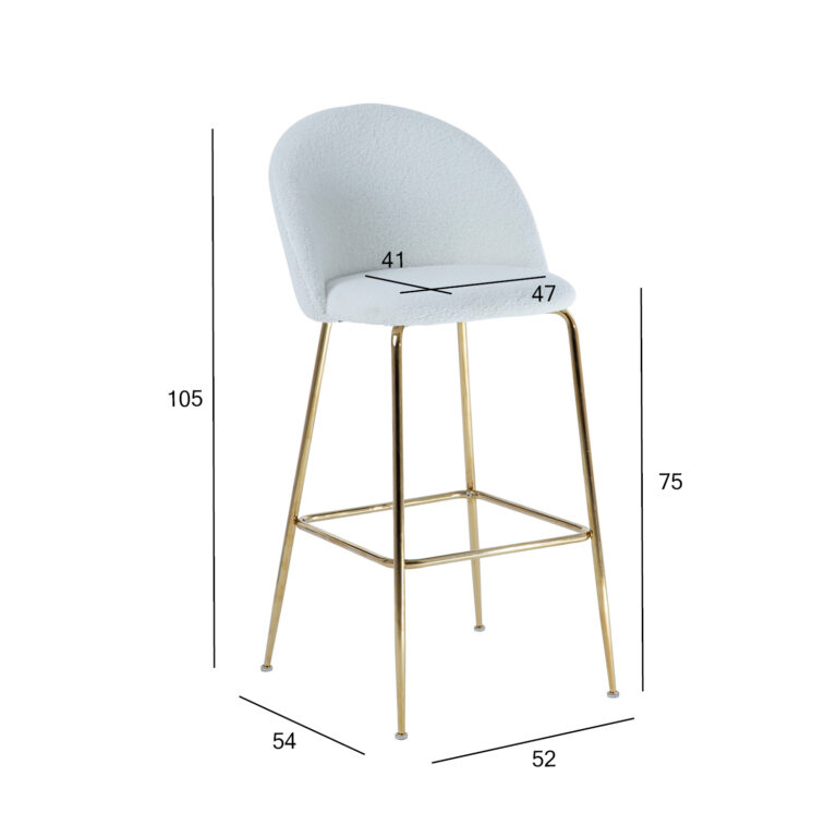 Baaritool BEETLE, valge. Luksusliku välimusega, elegantne ja mugav BEETLE tool paneb iga ruumi särama ja tekitab sooja, hubase tunde. Tooli iste ja seljatugi on polsterdatud ja kaetud kvaliteetse, pehme plüüskangaga. Kattematerjal: 100% polüester, 400g/m². Metallist jalad on viimistletud kuldse pulbervärviga. Tooli üldmõõdud on 52x54xH105cm, istme laius 47cm, istme sügavus 41cm, istme kõrgus 75cm. Seljatoe kõrgus 33cm, jalatoe kõrgus 30cm. Kaalupiirang 100kg.