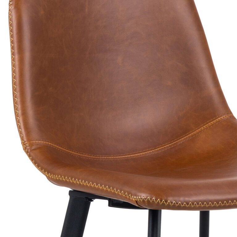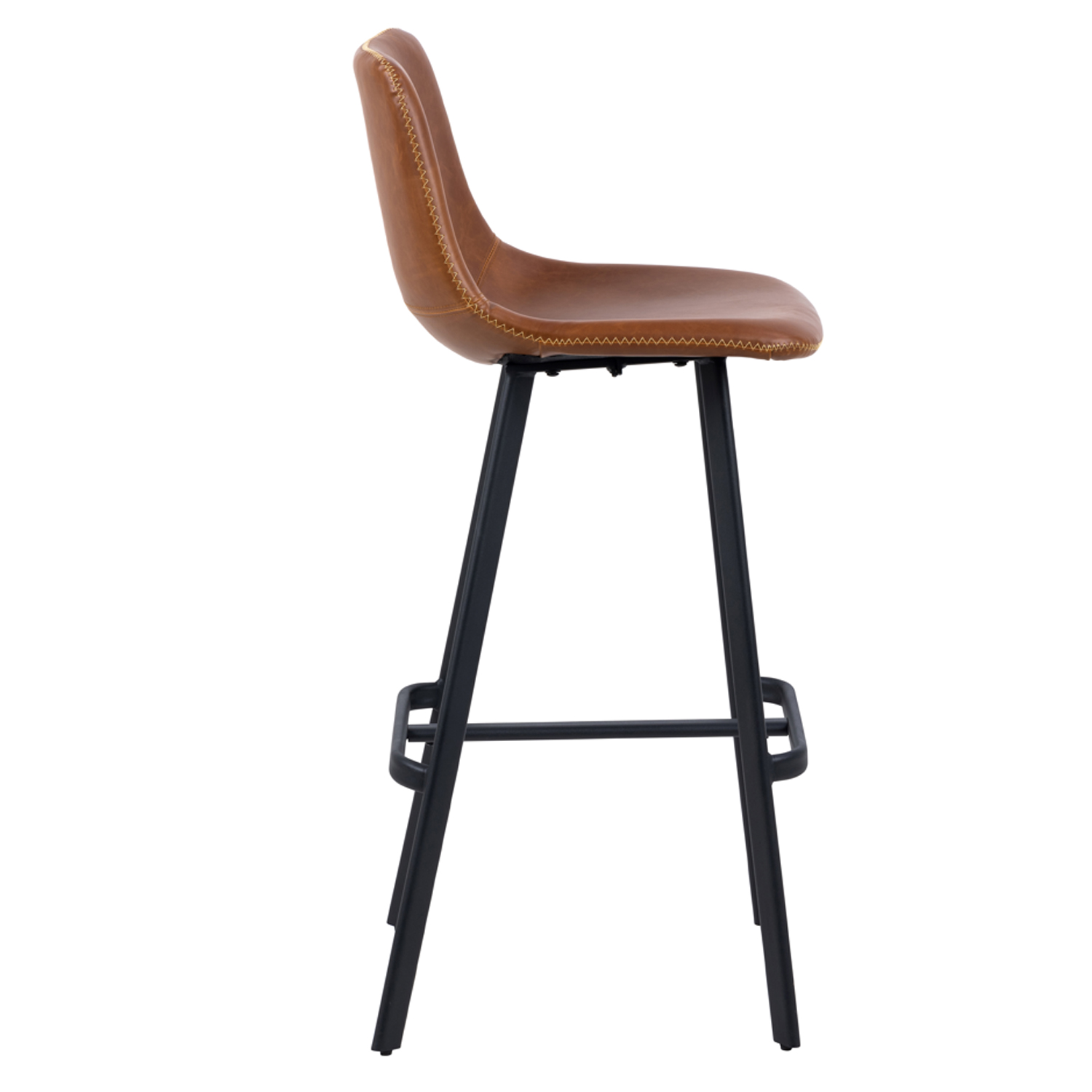 Baaritooli disainis on pööratud tähelepanu mugavusele ja disainile. Toolil on mugav toetav iste. Pruuni kunstnahaga kaetud baaritoolil on tugev ja rikkalik iseloom. Toolil on mattmust alus koos jalatoega. Moodne baaritool sobib igasse koju. Istumiskõrgus: 76,5cm. Kaalupiirang: 110kg. Mõõdud 46,5x50xH103cm.
