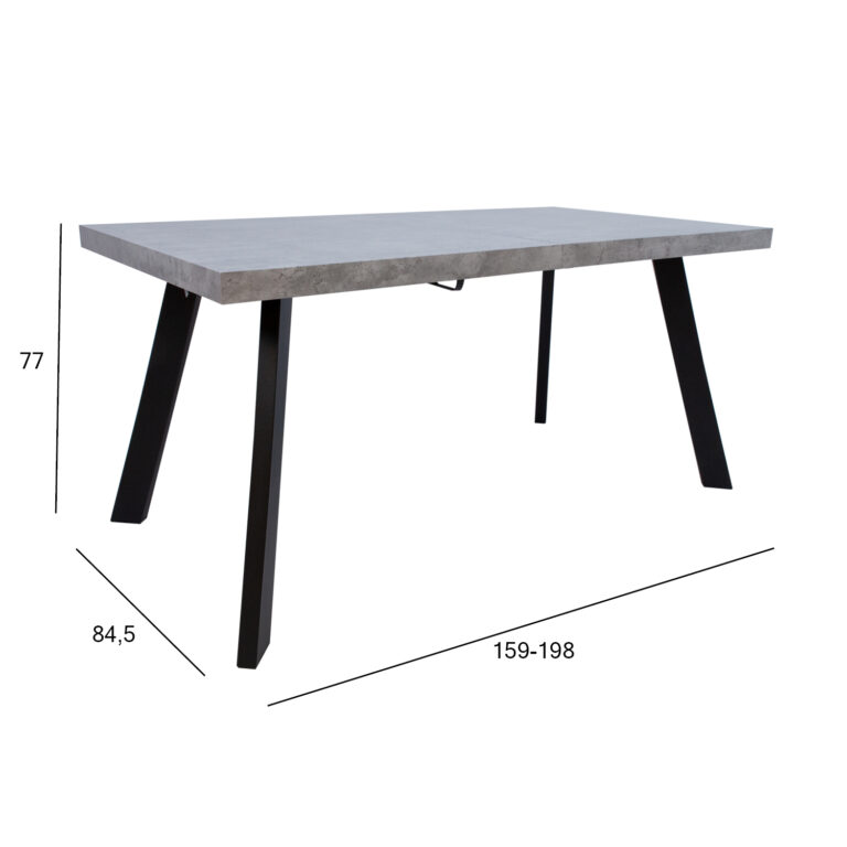 Söögilaud BRIGIT 159/198×84,5xH77cm, betoon, MDF, metalljalad