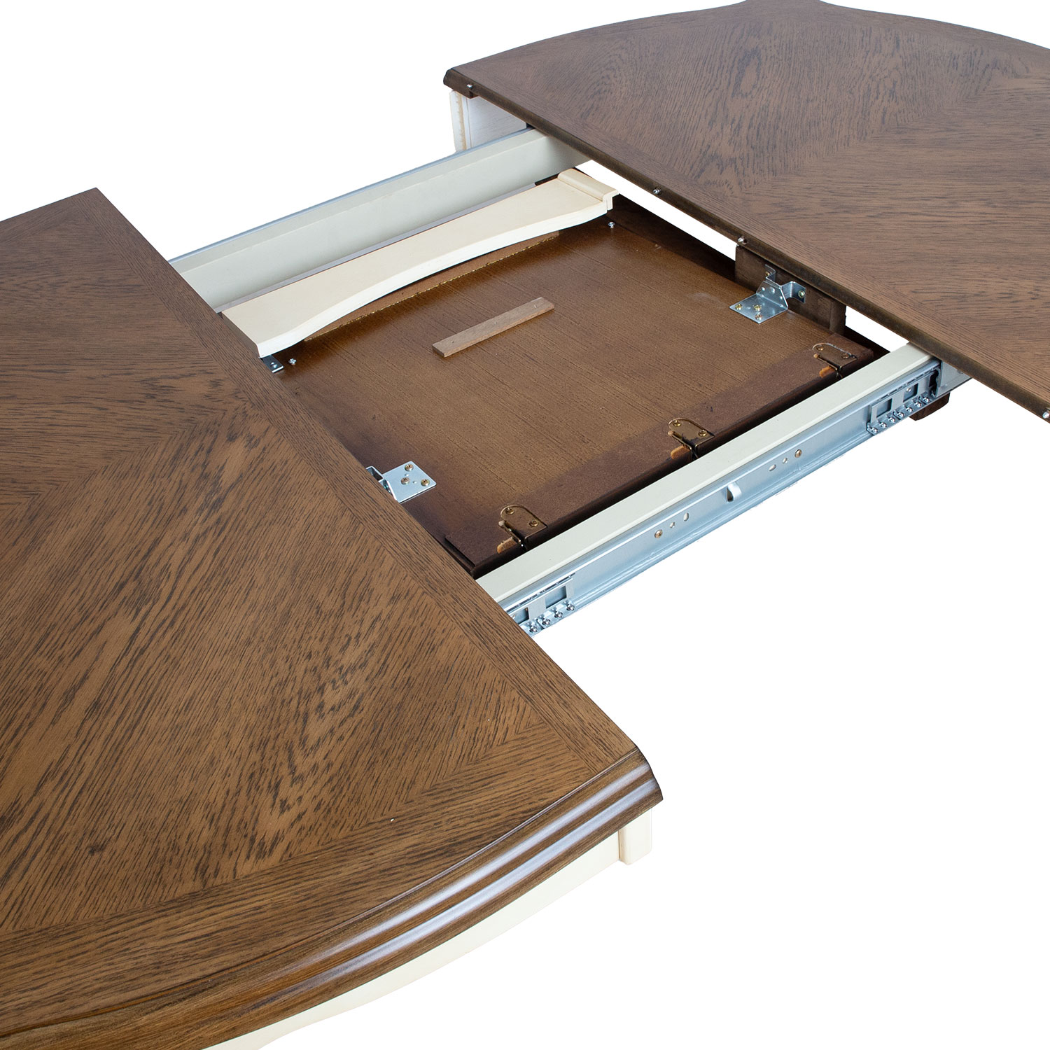 Laud on keskelt pikendatav. 45cm lai, keskelt kokku klapitav pikendusosa on paigutatud lauaplaadi alla.