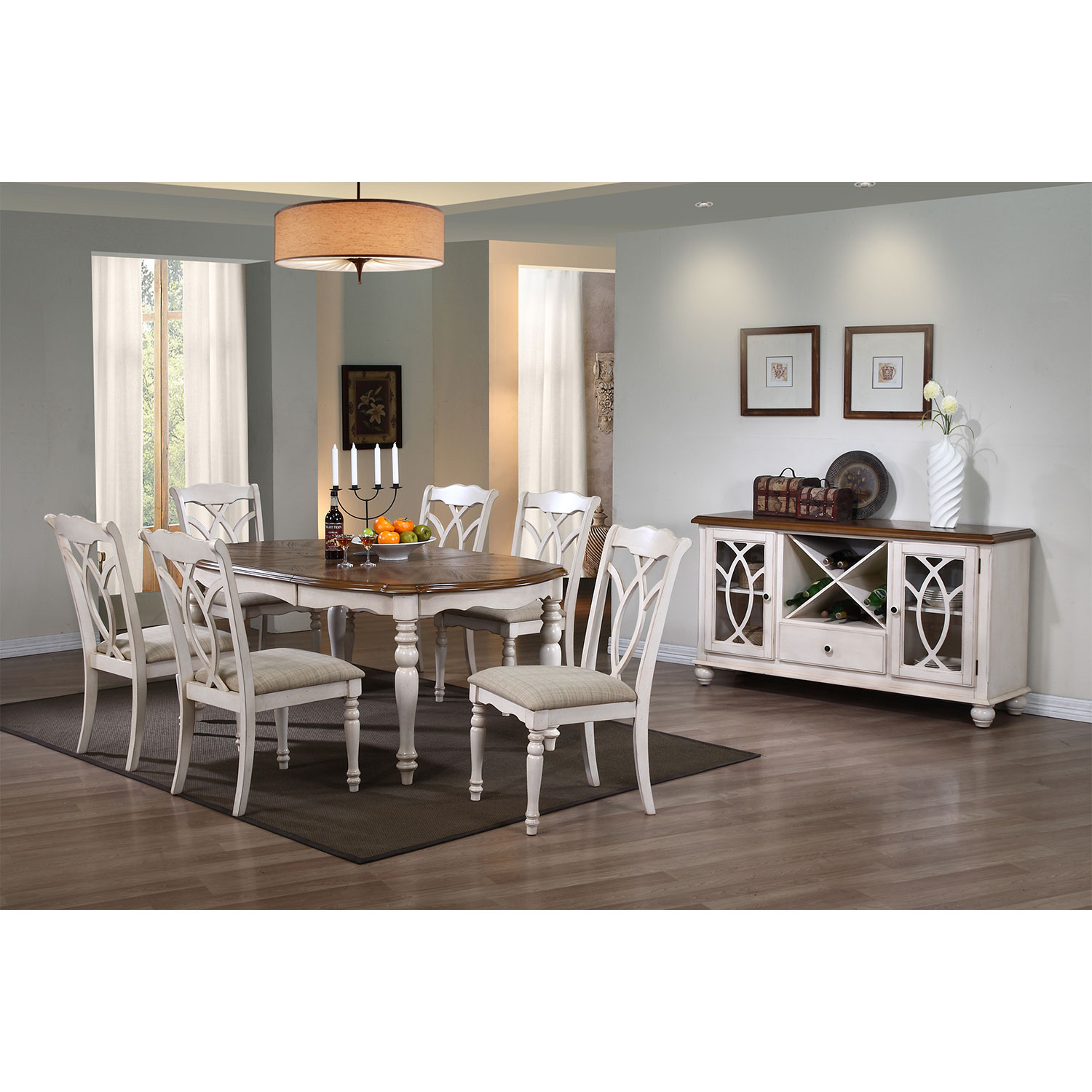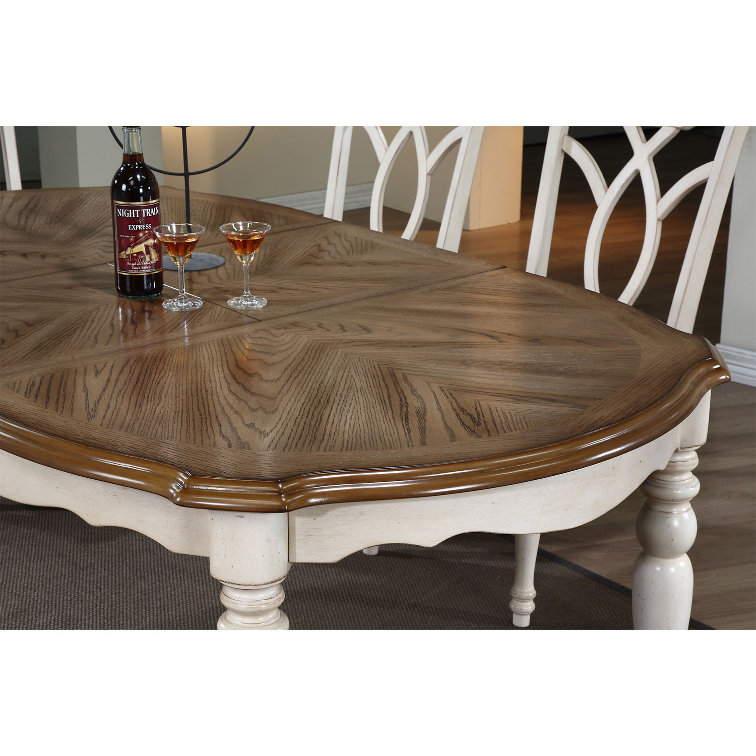 Treitud jalad ja lauaplaadi alusraam on valmistatud kummipuust ning viimistletud antiikvalge värviga.