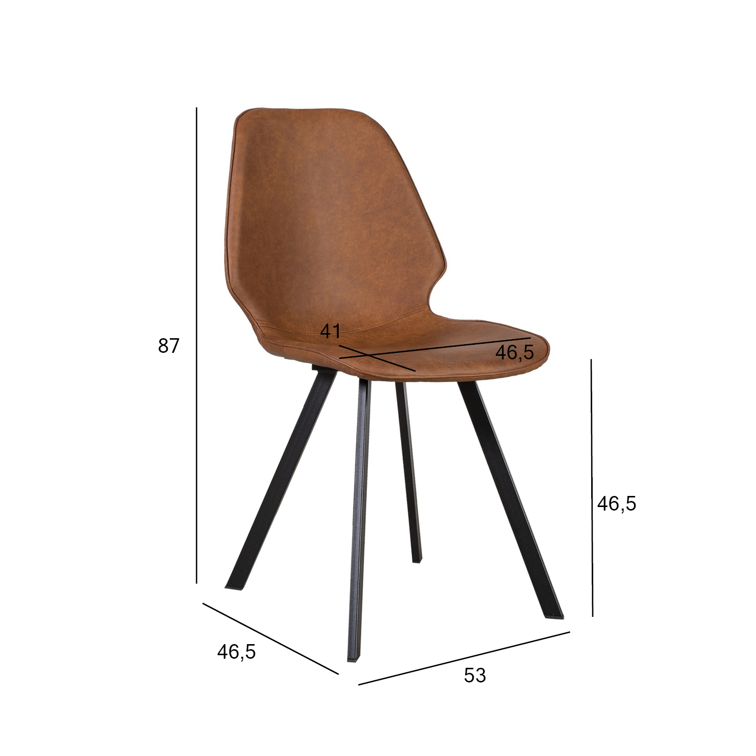 Tooli üldmõõdud on 46,5x53xH87cm, istme laius 46,5cm, istme sügavus 41cm, istme kõrgus 46,5cm, seljatoe kõrgus 44cm.