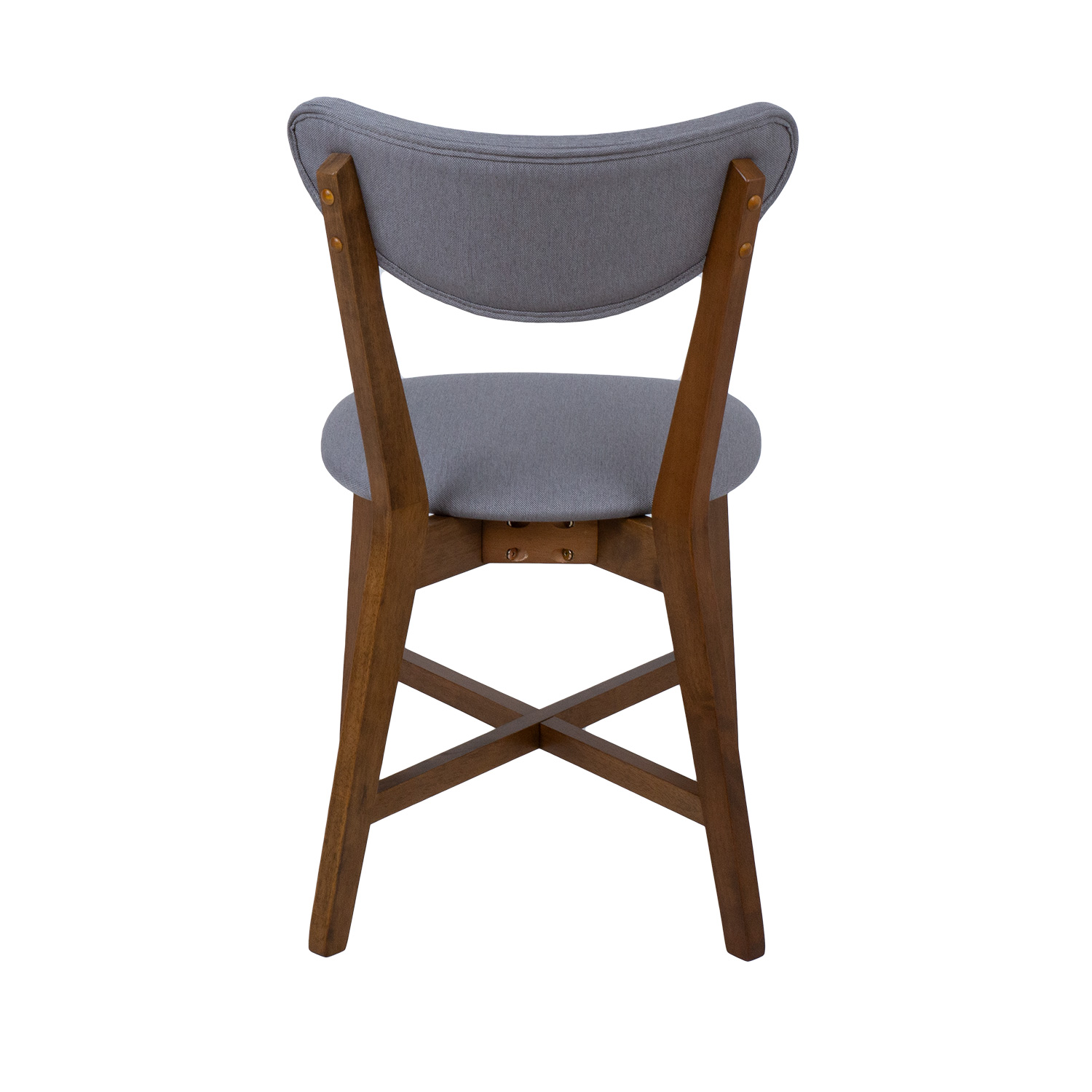 Tool JESPER hall. Tooli kergelt polsterdatud iste on kaetud halli polüesterkangaga. Tooli jalad ja raam on valmistatud kummipuust ja viimistletud pähkli toonis lakiga. Tooli üldmõõdud on 44x56x79,5cm. Istme kõrgus 45,5cm. Kaalupiirang 100kg.