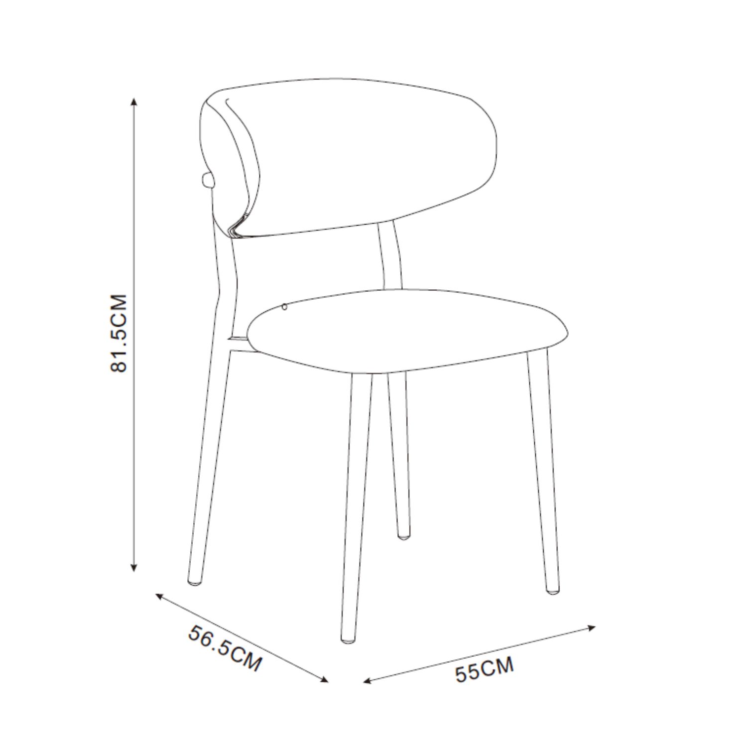Tooli üldmõõdud: 55 x 56,5 x H81,5 cm.