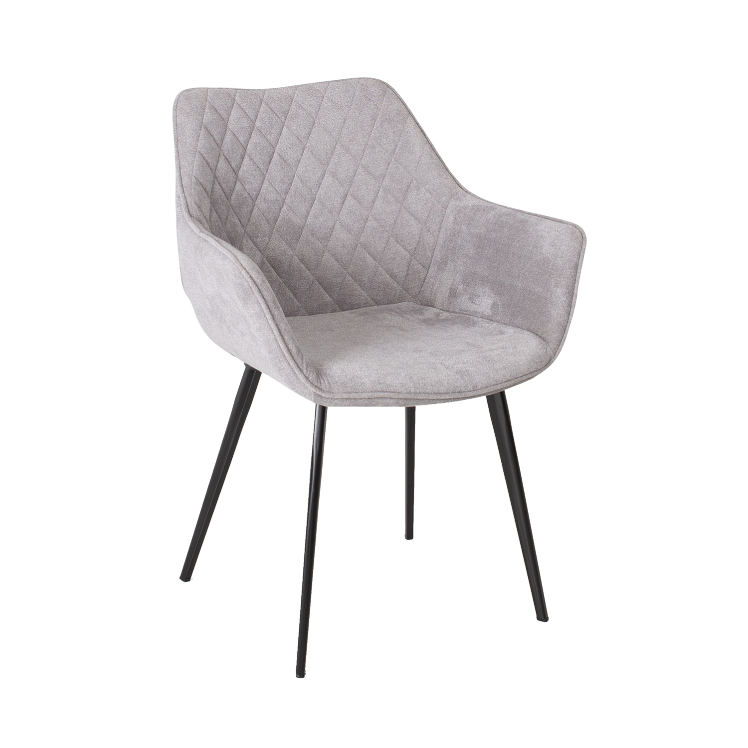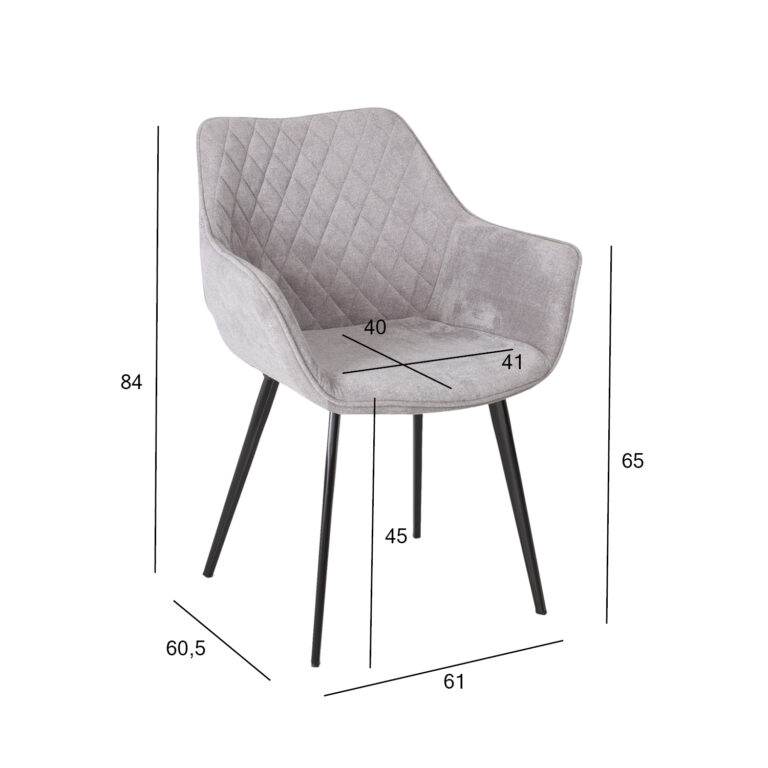 Tool NAOMI 61×60,5xH84cm, hall. Tooli iste on kergelt polsterdatud ja kaetud halli kangaga. Jalad on valmistatud metallist ja viimistletud musta pulbervärviga. Kaalupiirang 100kg.