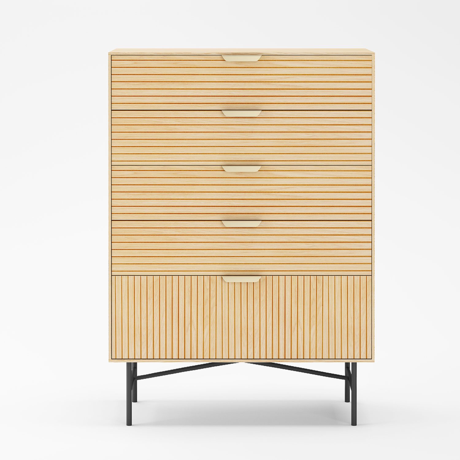 Kummut BASSEL 5-sahtliga 80x40xH114cm, 3D melamiin.