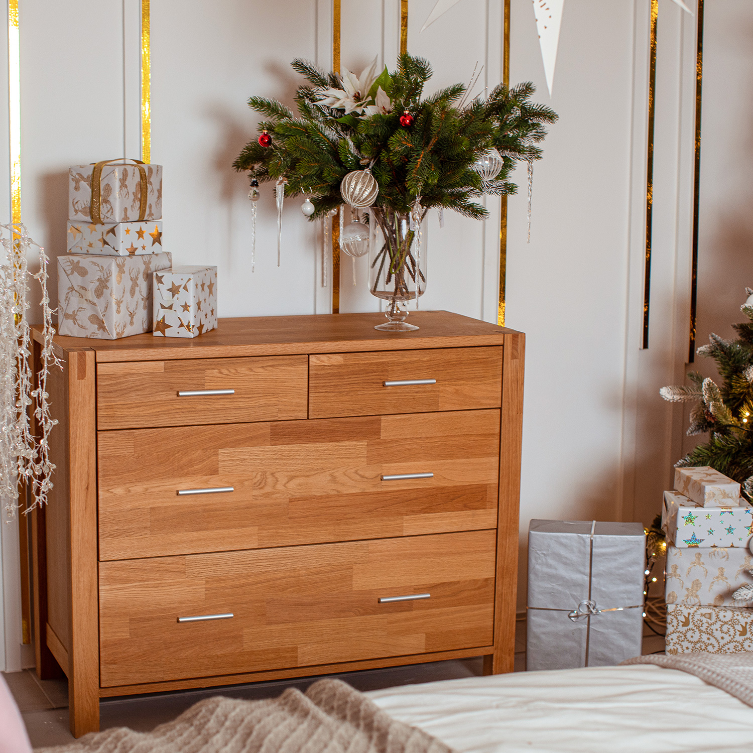 Kummut CHICAGO NEW 4 sahtliga, 105x45xH84cm, puit: tammespoon, värvus: naturaalne