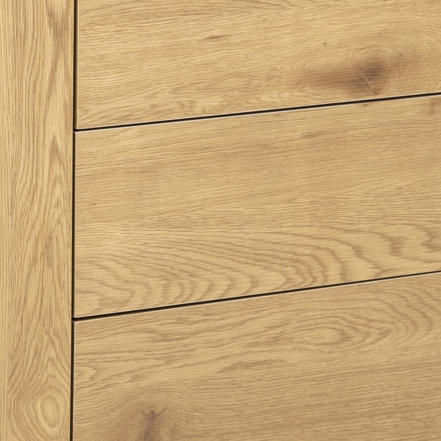 Kummut SEAFORD 120x40xH82cm, 3 sahtliga, raam: MDF, must matt, 1 uks: lamineeritud kattega mööbliplaat, värvus: tamm
