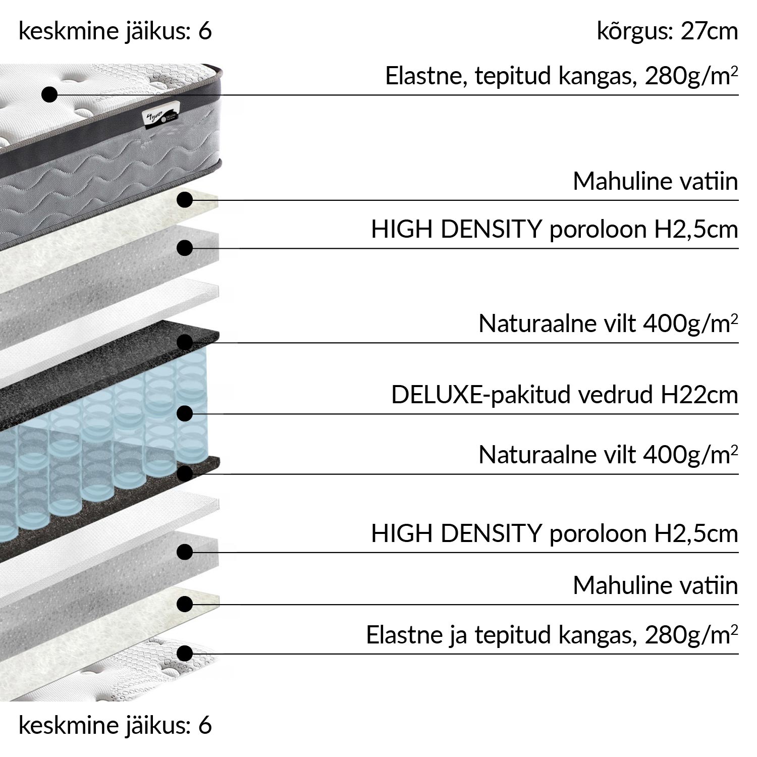 Vedrumadrats HARMONY DUO 120x200xH27cm, kahepoolne, rullpakendis