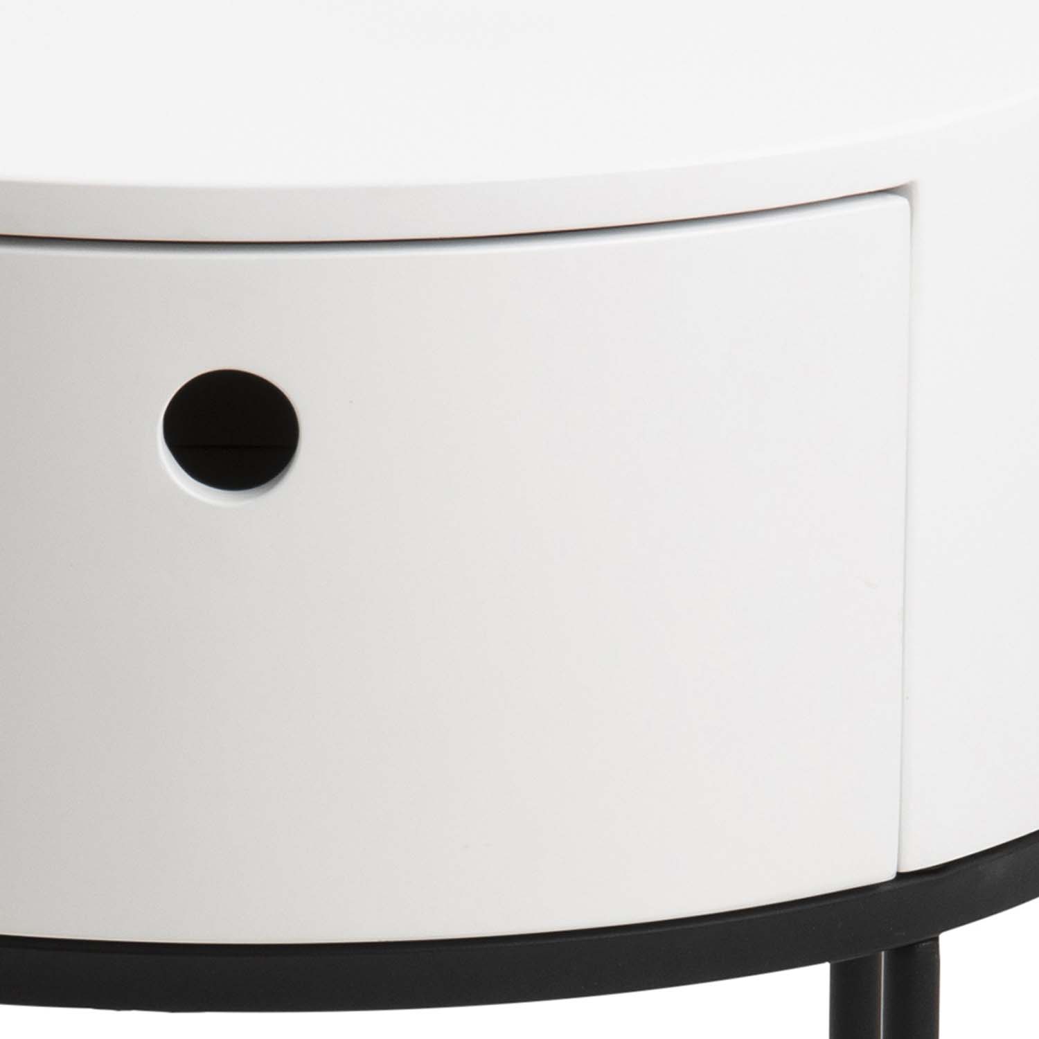 Öökapp, mis on stiilne, kuid pakub ka vajalikke hoiustamistingimusi. Ümar kuju ja minimalistlik vorm muudavad selle ideaalseks igasse magamistuppa. Öökapp ei võta liigselt ruumi ja sellel on sahtel asjade jaoks, mida soovite silme alt eemal hoida. Valgeks värvitud pealispind toetub pulbervärvitud terasest alusele, mis loob kontrastse välimuse. Mõõdud on 40x40xH51cm. HOOLDUS: Üldiselt vajavad värvitud pinnad vähe hooldust. Kõik plekid tuleb koheselt eemaldada seebiveest kuivaks väänatud lapiga. Alus: Kasutage igapäevaseks puhastamiseks seebiveest kuivaks väänatud lappi. Rooste vältimiseks pühkige pind kuivaks. Ärge hõõruge pinda kõvade esemetega.