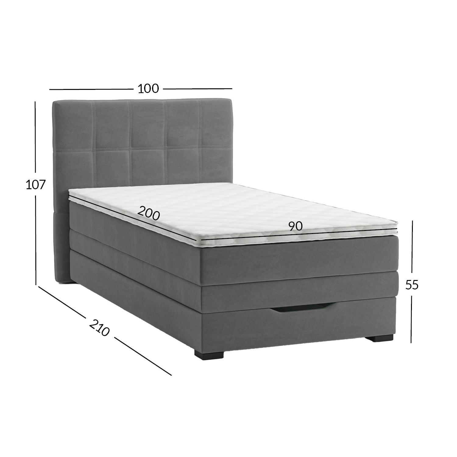 Voodi üldmõõdud on 100x210xH55/107cm.