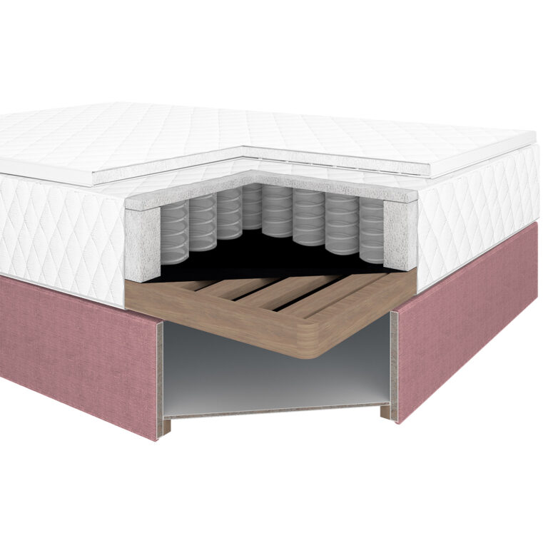 Kontinentaalvoodi LEVI 120x200cm, madratsiga, roosa, 123x210xH114,5cm