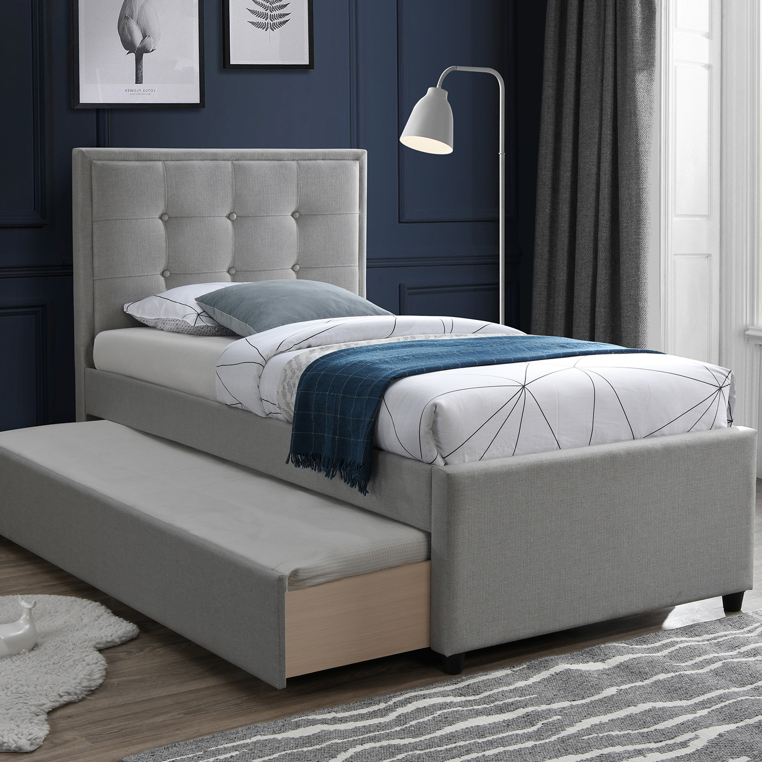 Voodi all on mõlemale poole väljatõmmatav sahtel, mida võib kasutada lisamagamiskoha või panipaigana.