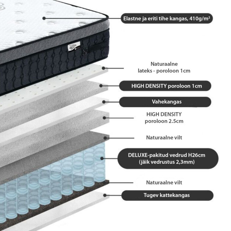 Voodi ROMAN madratsiga HARMONY DELUX 160x200cm, hall