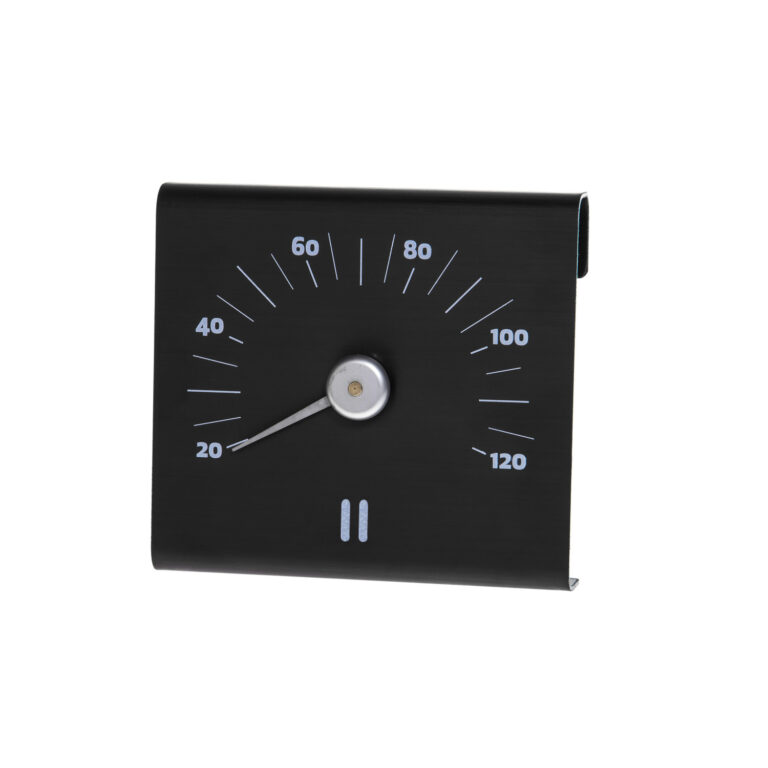 Sauna termomeeter RENTO BLACK, 15 × 14 × 3 cm. Värviline anodeeritud alumiinium.